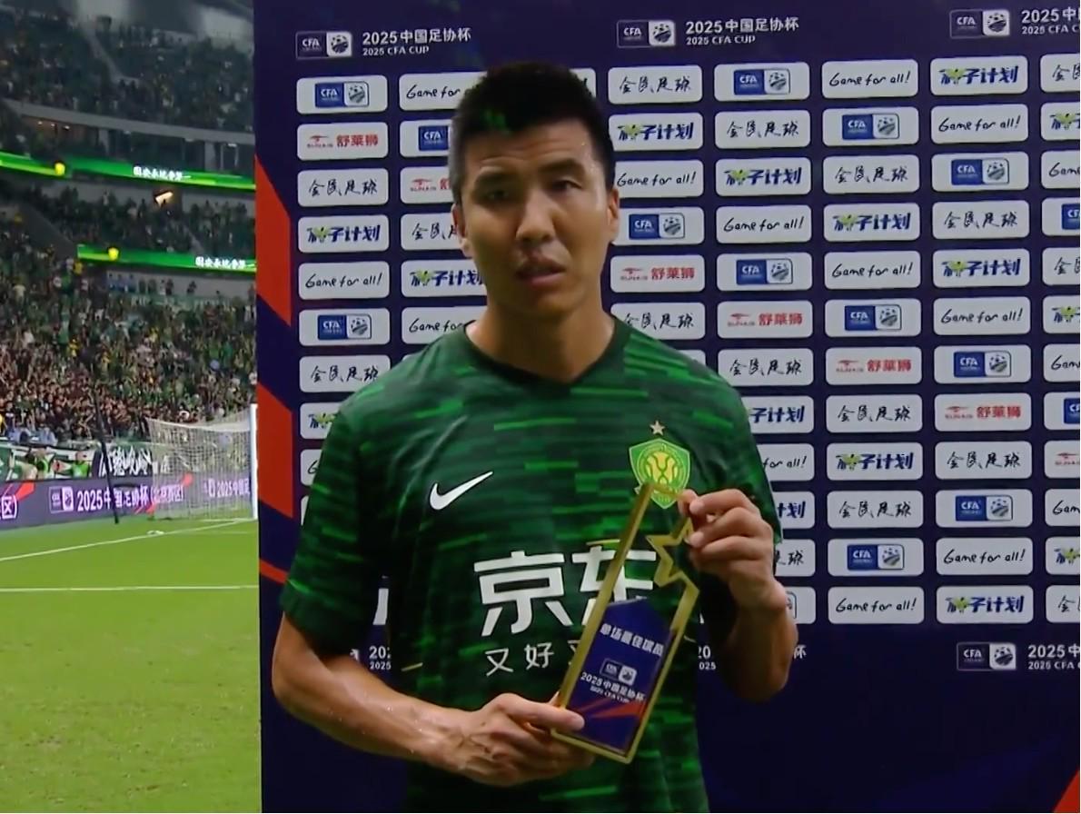 赛后,王刚领取了本场最佳球员的奖杯。